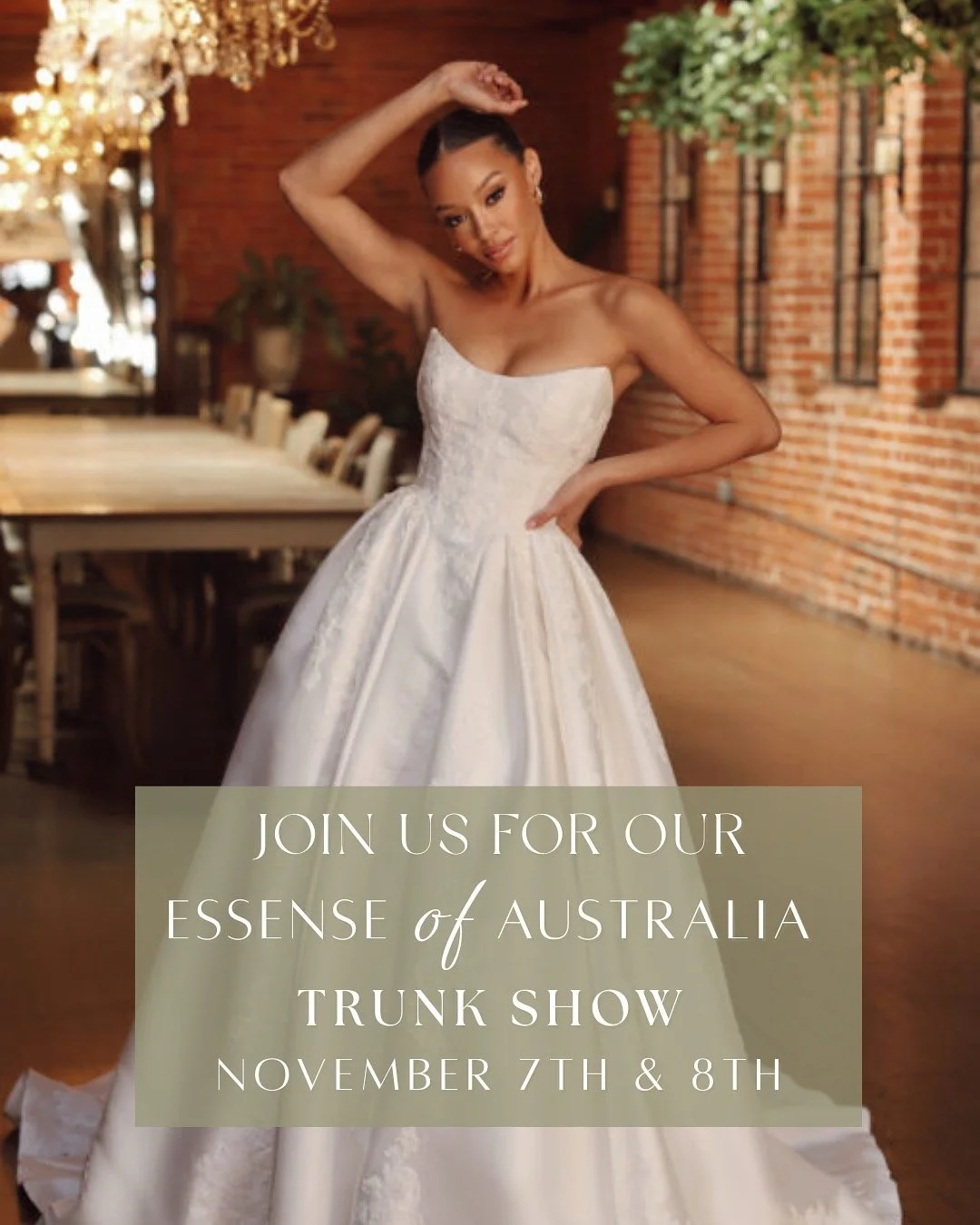Don't miss this exclusive opportunity to find your dream designer gown at our Essense of Australia Trunk Show!
